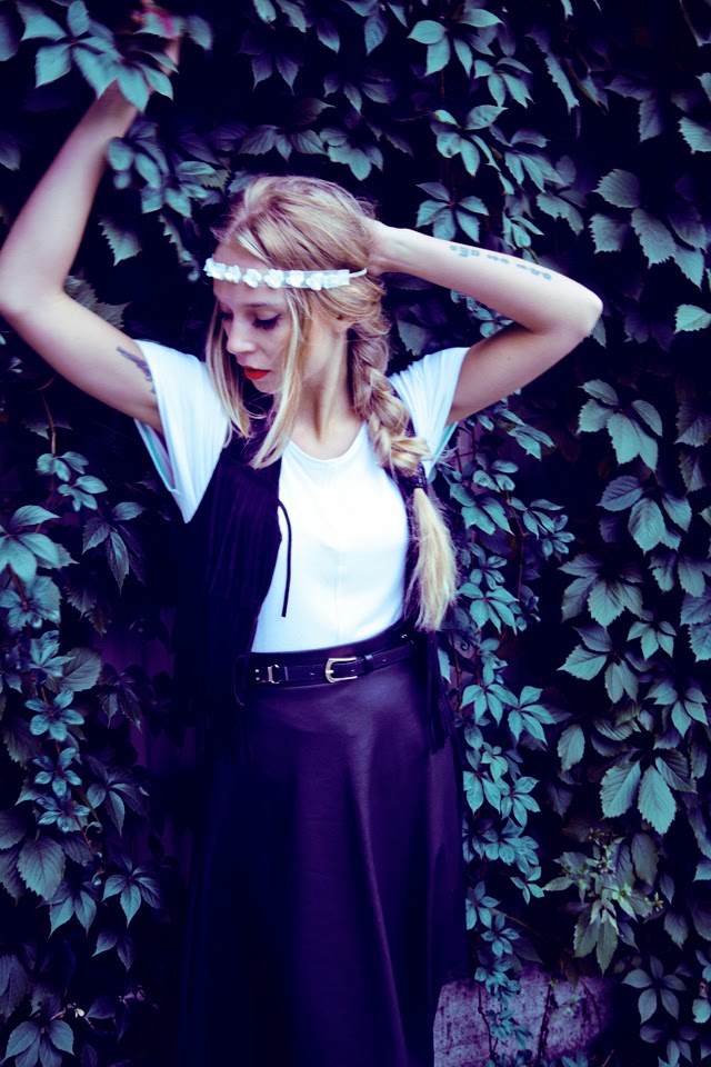 Shirt- DRESSAP, vest- H&M, skirt- River Island, shoes- Deezee, backpack- Vero Stilo, headband- H&M